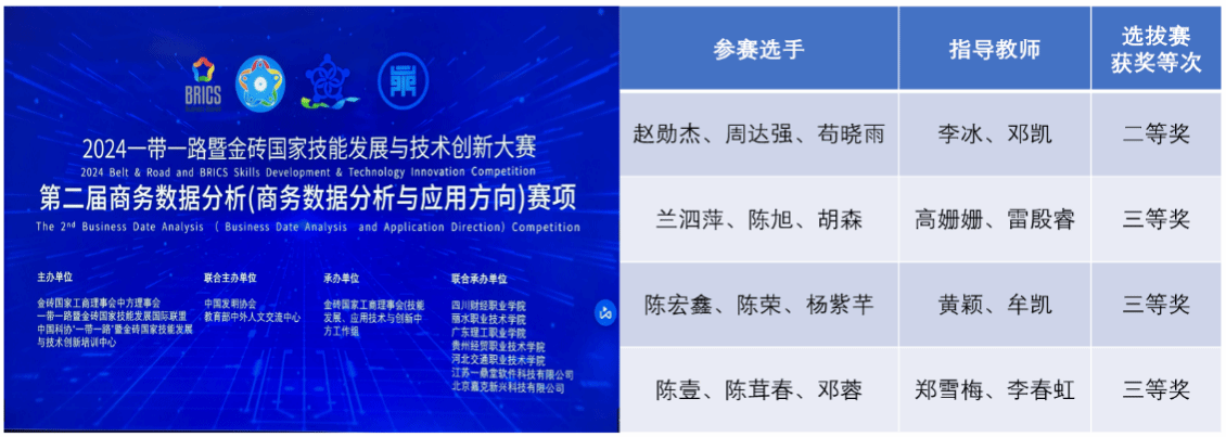 信息技术系学子在2024年“一带一路”暨金砖大赛之第二届商务数据分析选拔赛中斩获佳绩2024年5月26日,备受瞩目的“一带一路”暨金砖大赛之第二届商务数据分析选拔赛圆满落幕。伟德官网信息技术系学子在激烈的竞争中脱颖而出,凭借扎实的专业知识和出色的实践技能,最终斩获二等奖1个、三等奖3个。本次比赛,学院信息技术系精心选拔了赵勋杰、周达强等12名大数据技术专业学生,组成4支实力强劲的参赛队伍。在系部及实践教学中心组成的教师教学团队的悉心指导和大力支持下,...