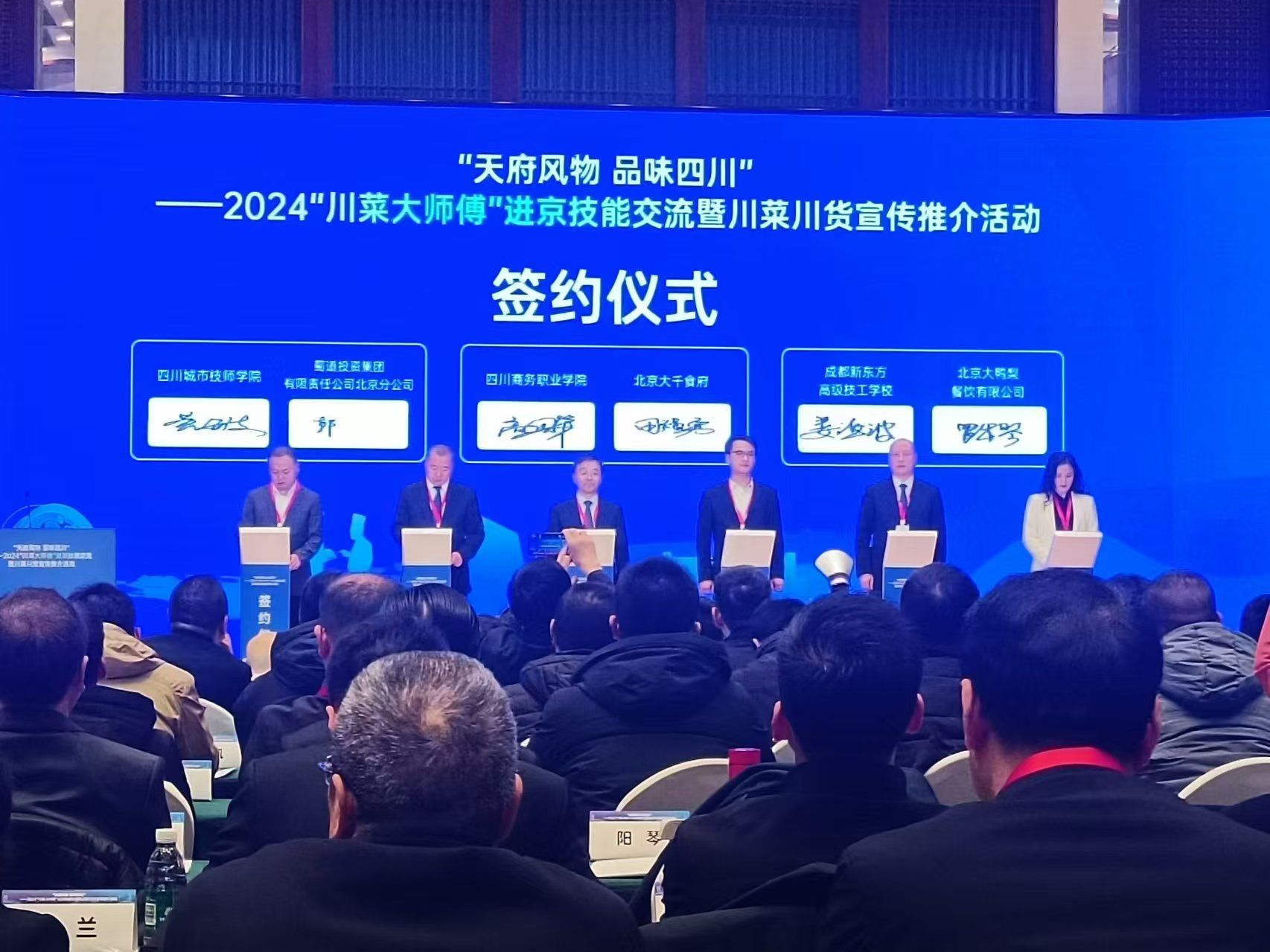 12月18日,由四川省人力资源和社会保障厅、四川省商务厅、四川省人民政府驻北京办事处、北京市人力资源和社会保障局、北京市商务局等单位主办的“天府风物 品味四川”——2024“川菜大师傅”进京技能交流暨川菜川货宣传推介系列活动在北京正式启动。学院党委副书记、院长高司华带领党委宣传部部长、经济贸易系党总支书记管齐峰、旅游管理系党总支书记陈根元、旅游管理系营养配餐专业负责人易树敏进京参加了此次活动。此次活动内容丰富,...