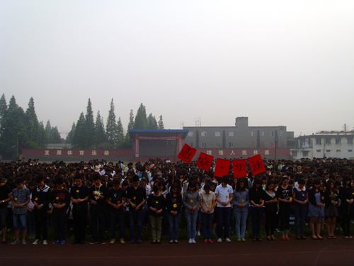 按照四川省政府25日发布的公告,为表达全省各族人民对“4.20”芦山7.0级地震遇难同胞的深切哀悼,4月27日早上7:50,学院组织和盛、文家两个校区全体同学和所有学工系统值班老师分别在学院和盛的振华广场、文家运动操...