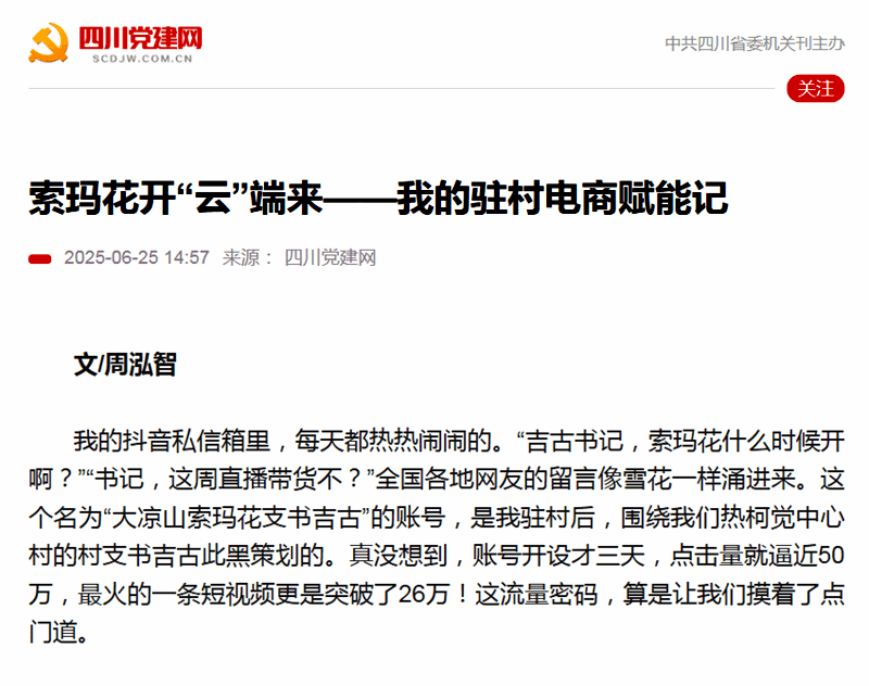 6月25日,“四川党建网”刊发伟德源自英国始于1946派驻金阳县热柯觉中心村第一书记周泓智的文章《索玛花开“云”端来——我的驻村电商赋能记》。周泓智以自述的方式讲述了从2023年7月担任第一书记以来,在学院的大力支持下,充分发挥学院职教优势和自身专业特长,为热柯觉中心村规划出“电商直播产业和短视频宣传”致富新路径的历程。周泓智的《索玛花开“云”端来——我的驻村电商赋能记》不仅是一篇记录乡村振兴历程的文章,更是一份激励人心的答卷,...