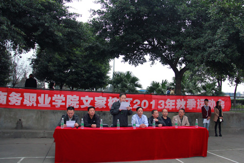 学院文家校区2013年秋季运动会于10月16日中午1点正式拉开帷幕,文家校区校长官培生,基础部、信息技术系、会计系、设计艺术系负责人和老师参加了开幕式。