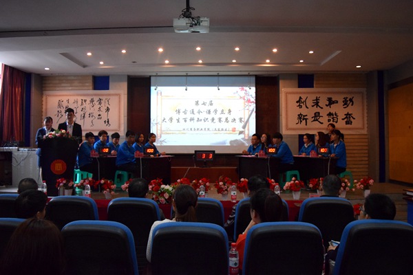 为进一步拓宽伟德官网大学生多维度知识面,提升学生综合素质,由团委(学习部)承办的文家校区“博古通今、谦学立身”第七届大学生百科知识竞赛自4月启动,并于4月26日在学术报告厅举行了隆重的总决赛及颁奖典礼。