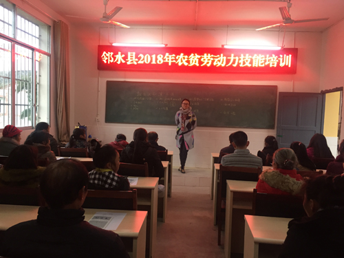 2018年1月25日,伟德官网刘丽娜老师受邻水县袁市镇人民政府邀请,前往袁市镇大光明村邻州田野教育学院,对贫困家庭劳动力进行了培训。 本次培训主要是提升贫困家庭劳动力的个人素质和制定职业生涯规划,共计四十一人参加了培训。为更好地提升贫困家庭劳动力技能水平,实现和稳定农村家庭劳动力就业,增加贫困家庭收入做出了贡献。