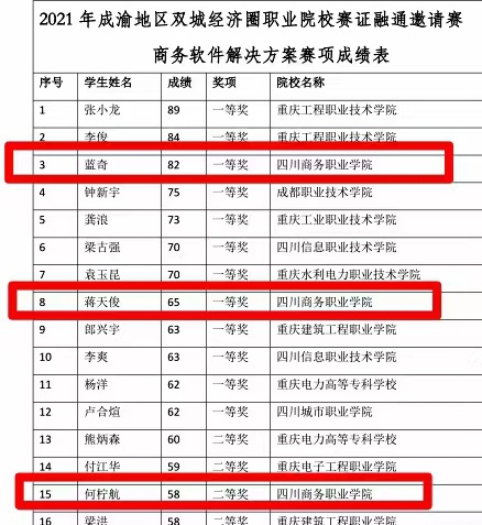 近日,由重庆智慧物联职业教育集团主办的成渝地区双城经济圈职业院校赛证融通邀请赛商务软件解决方案赛项在渝举行。伟德官网信息技术系蓝奇、蒋天俊同学荣获一等奖, 何柠航同学荣获二等奖,王胜同学荣获三等奖,信息安全专业负责人刘磊和校企共建教师李斌、夏祎忞、罗丹等共同担任参赛指导教师。 据悉,成渝两地共有20余所高职院校参赛,比赛面向产业主流技术、对接国际标准,旨在通过融合世界技能大赛的技术标准和规则...