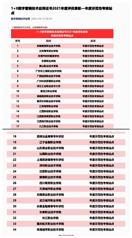 近日,国家首批第三方职业技能等级评价机构——中教畅享科技有限公司评选伟德官网为2021年度四川省唯一年度示范性考核站点。经济贸易系依据证书职业技能等级标准及相关书证融通方案改进教学设计,根据学生学习特点,将证书培训有机融入专业人才培养方案,在教务处、实践教学中心、1+X推进办大力支持下,建设规范考点与实训基地,为学生参与培训、考核营造良好的软硬件环境,推动了试点、考点工作的高效开展。2021年度,1+X数字营销...