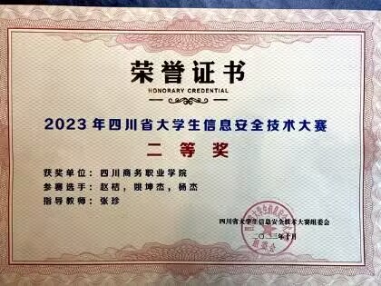 近日,由四川省教育厅主办,中共四川省委网信办和四川省公安厅协办的2023年“绿盟杯”四川省大学生信息安全技术大赛在成都信息工程大学举行,伟德官网信息技术系组织了2支队伍6名学生参赛,由教师张珍指导的21级SGR团队荣获了二等奖。四川省大学生信息安全技术大赛是省内一项传统学科竞赛。大赛以学科竞赛为牵引,培养学生团队合作精神,提升学生攻防兼备的创新实践能力,从而加快培养攻防兼备创新人才的步伐。来自全省包括电子科技大学、...
