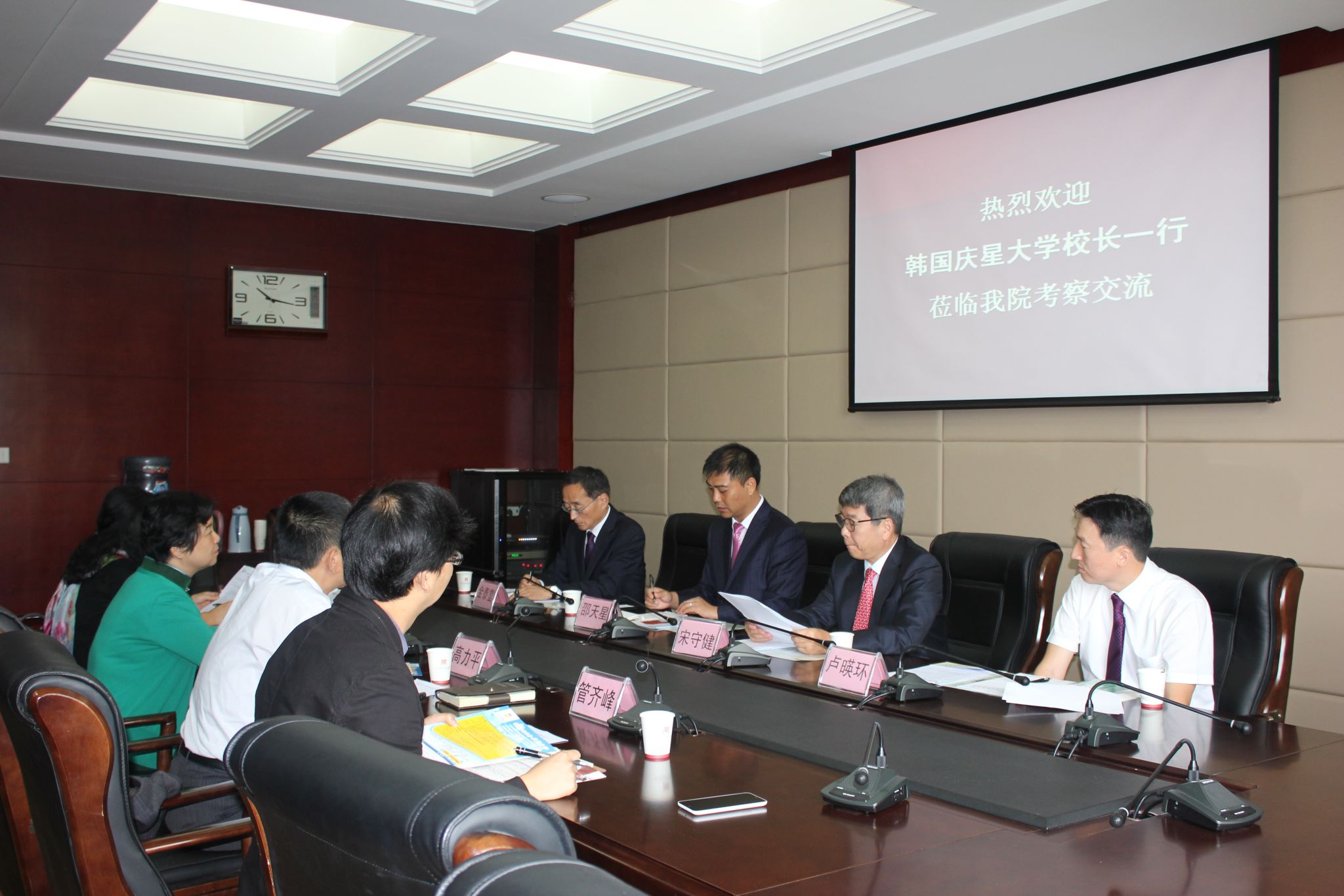 宋校长对韩国庆星大学做了详细介绍:庆星大学位于釜山市市中心,是一所有着近60年历史的四年制综合性大学,他们非常重视国际化合作,通过良好的招生及管理,庆星大学被韩国教育部授予2013年度外国留学生招生管理优秀大学荣誉称号,是釜山地区首批被授予此称号的大学之一。宋校长表示,希望通过此次会谈,双方展开广泛友好的交流,期待共创辉煌的未来。