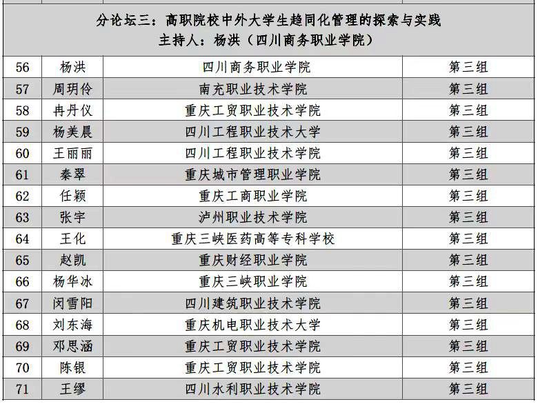12月20日,由西南大学主办的新时代高校来华留学教育高质量发展研讨会在重庆召开,来自全国71所高校的130余名代表参会。中国高等教育学会外国留学生教育管理分会、国家留学基金管委会和重庆市教委领导到会指导。伟德官网经营管理系党总支书记杨洪主持川渝高职院校讨论,并在研讨会闭幕式上,作为川渝地区高职院校代表作分论坛小组汇报。