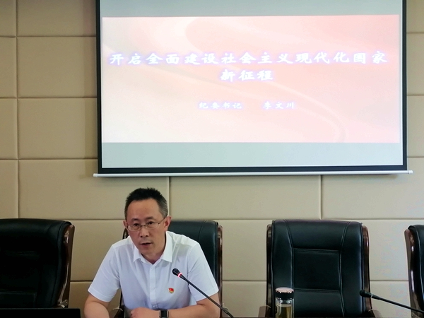 6月22日,经营管理系邀请学院党委委员、纪委书记李文川为全系教师、学生党员讲授主题党课——“开启全面建设社会主义现代化国家新征程”。