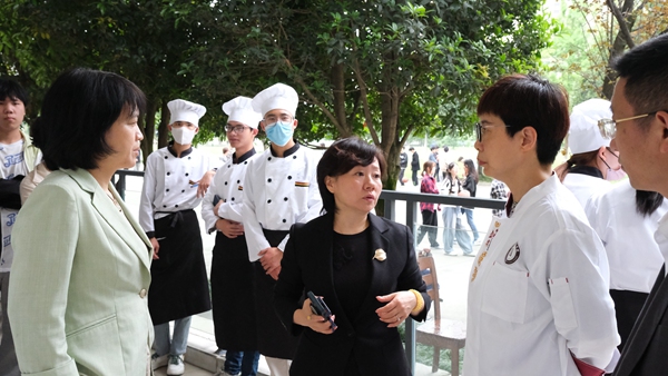 康璐和张凤玲在发言中表示:坚信此次与高校教师和企业大师合作建立的大师工作室将实现双方资源共享、优势互补,为发挥名师带徒提供了一条极为有效的途径,为高技能人才参与技术攻关和技能成果展示提供了平台。康璐和张凤玲共同为易树敏营养配餐技能大师工作室挂牌。