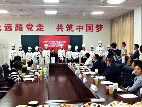 为强化技能大师引领,培养高技能营养配餐人才,4月13日下午,旅游管理系营养配餐专业隆重举行了“成都市易树敏营养配餐技能大师工作室”授牌仪式。学院副院长康璐、教务处处长李樵、旅游管理系党总支书记陈根元、旅游管理系副主任沈超,成都市营养学会会长张凤玲、成都市营养学会办公室主任曾建容等出席了本次活动。