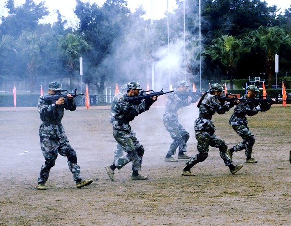 伴随着高昂激越的阅兵曲,结训典礼正式拉开帷幕。在全体师生的注目礼下,护卫队护送五星红旗庄严入场,在庄严嘹亮的国歌声中,鲜艳的五星红旗迎风飘扬,神采奕奕的同学们立正敬礼。各方队在教官们的带领下,斗志昂扬地依次入场,他们迈着矫健且整齐划一的步伐经过主席台接受检阅。同学们行进整齐、精神抖擞、训练有素,充分展示了商院学子积极向上、团结奋进的精神风貌。分列式结束后,同学们分别进行了刺杀操、擒敌拳、匕首操等表演,赢得了在场领导和老师的阵阵掌声。最后汇报表演在集体手语操中圆满完成。