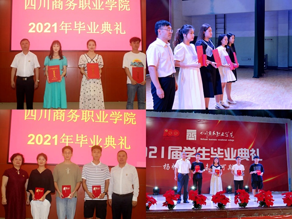 许丹雅、李叔龙宣读了2021届优秀毕业生表彰决定;魏萍等101名同学荣获“四川省优秀毕业生”称号、王磊等170名同学荣获“学院优秀毕业生”称号。毕业生代表向自己的辅导员献花,表达对恩师的感激与祝福。山高水长有时尽,唯有师恩日月长,本届毕业典礼在温馨的氛围中圆满结束。
