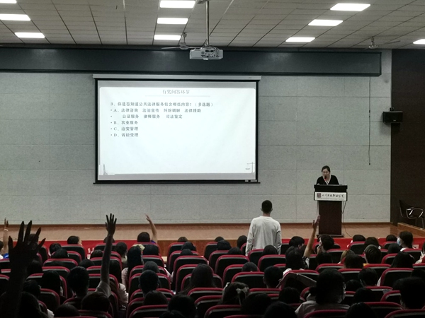 “反诈骗热线是多少?”“你知道公共法律服务包含哪些内容?”台上台下互动积极,同学们争先恐后地举手发言。这是9月27日晚,由院团委主办、经济贸易系承办的“律动青春,法制护航--送法进校园”主题宣讲活动。活动由和盛镇司法所工作人员和四川蓉兴律师事务所律师主讲。现场参加的还有温江区和盛镇镇人民政府工作人员、经济贸易系辅导员代表以及经济贸易系21级和20级学生代表等。