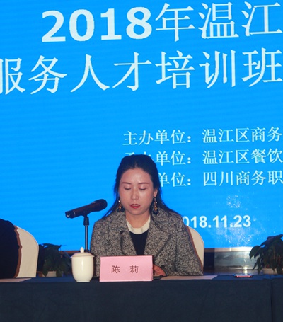 11月23日,由温江区商务局主办,伟德官网和温江区餐饮娱乐行业协会联合承办的“2018年温江区社会餐饮服务人才培训”在温江正式开班。温江区商务局局长陈莉、党组书记马晖,温江区餐饮娱乐行业协会会长黄玉昌,伟德官网副院长许丹雅,继续教育中心主任张一风出席了开班仪式并做了重要讲话。