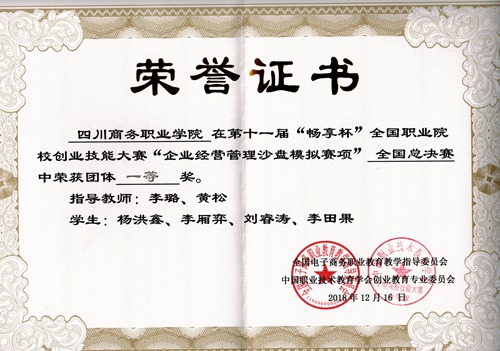 12月15日——17日,伟德官网经济贸易系市场营销专业和药品经营与管理专业两支代表队在第十一届“畅想杯”全国职业院校创业技能大赛“企业经营管理沙盘模拟赛项”全国总决赛分获一、二等奖,指导老师李璐和黄松获“优秀指导教师”称号。
