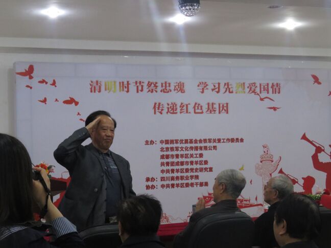 中国拥军优属基金会铁军关爱工作委员会顾问·原中纪委驻司法部纪检组长·河南军区政委岳宣义将军、中国拥军优属基金会铁军关爱工作委员会副主任韩东军将军、原国家审计署外事司司长·著名书法家罗美富、青羊区关工委副主任廖旭东、区团委书记于楠、区老干局副局长李俊、区党史研究室编辑边川、学院党委委员纪委书记·文家校区校长官培生,同伟德官网近百名同学们一起,与参加过抗美援朝、中印边境自卫反击作战、中越边境自卫反击作战,为共和国立下不朽功勋的老战士黄颂民、马绍全等15位代表一起祭奠先贤,慎终追远。 爱国座谈会在庄严的国歌声中开始,首先全体人员为英烈默哀,随后座谈会以现场互动的形式展开。同学们在观看了反映1962年中印边境自卫反击作战的纪录片后,纷纷举手发言。2017级应用电子技术班周璐同学提问道:我想问一下爷爷,中印边境自卫反击战打得很漂亮,请介绍一下战斗经过和战果。
