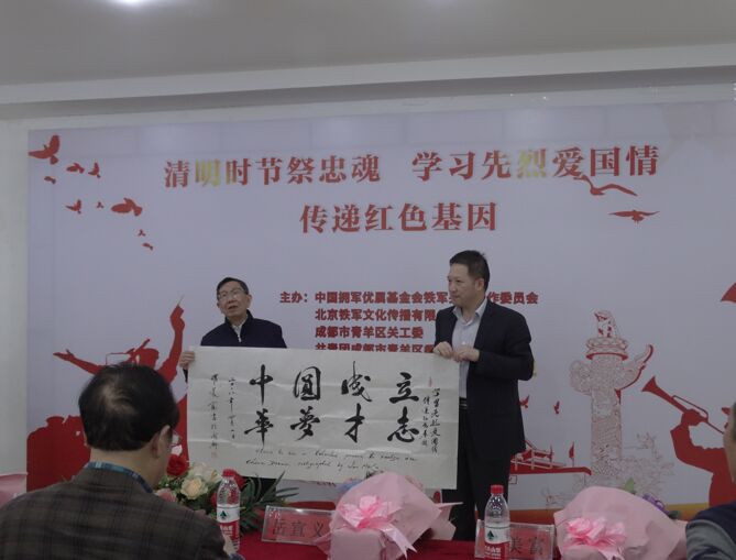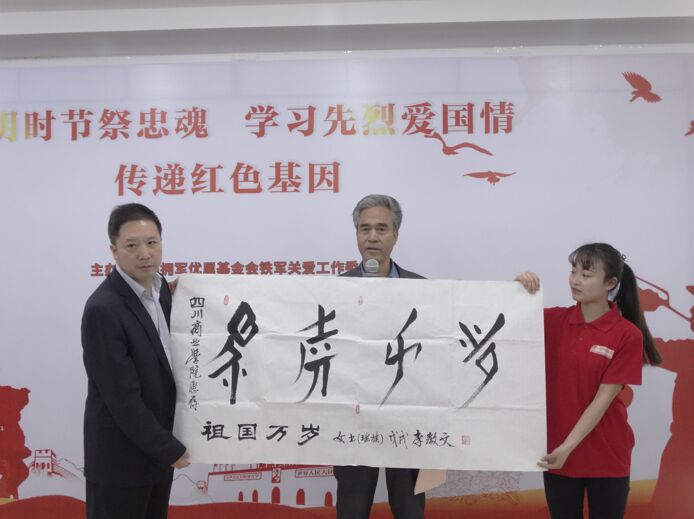 座谈会最后,著名中英文书法家罗美富、日喀则军分区副参谋长李教文向伟德官网赠送书法作品《立志成才 圆梦中华》、《祖国万岁》和画册《英雄礼赞》,鼓励同学们以优异成绩报效家国。