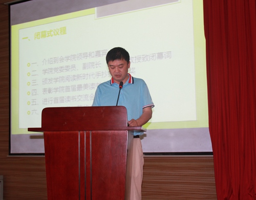 向宏志副院长致闭幕词,希望全院大学生要树立“为中华崛起而读书”的宏大志向,找准人生坐标,制定职业规划,充分利用宝贵的三年大学光阴,养成良好的读书习惯,培养正确的读书方法,认清“为什么读、读什么、怎么读”的核心问题,只争朝夕,奋力拼搏,在浓浓的书香中焕发当代读书人的美丽芳华!