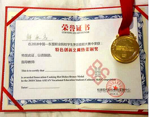 11月7日至9日,伟德官网旅游管理系由3名参赛指导教师唐凯、常胜、邓彦君和4名学生组成的代表队,参加了2018第四届中国——东盟职业院校学生烹饪技能大赛。本次大赛由广西教育厅、香港职业训练局主办、桂港现代职业教育发展中心、南宁职业技术学院承办,参赛队伍来自泰国、越南、香港、广西、江苏、浙江、山东、四川等地共14支代表队。比赛项目包括中式烹调、西式烹调、特色创新烹调。旅游管理系2017级烹调工艺与营养专业学生鲜承志获得特色创新烹调赛项铜牌,迈出专业建设“川菜走出去”的第一步。