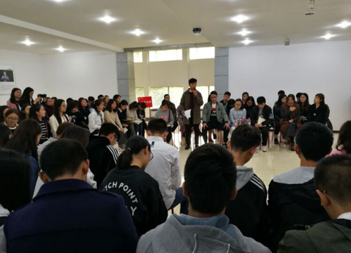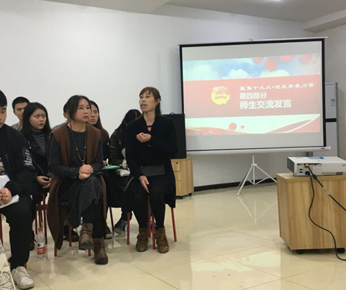 党有号召,团有行动。11月2日,大学生成长中心“逐梦厅”里,荡漾着百名师生齐声合唱国歌的嘹亮歌声,由院团委组织部承办的“不忘初心•接力奋斗”青年团员学习十九大精神(第1期)座谈会顺利召开。参加本次学习交流的有党委委员、纪委书记、文家校区校长官培生,艺术系党总支书记杨苑,思政部教授郑秀华,会计系团总支书记马宁,信息系团总支书记王钦,艺术系团总支书记赵捷,文家校区全体辅导员和2017级各班级学生代表等。