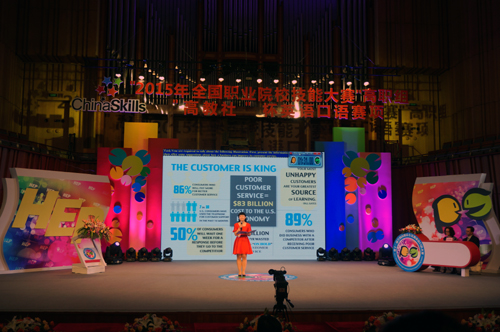 2015年6月2日至4日,全国职业院校技能大赛高职组“高教社”杯英语口语比赛在合肥大剧院隆重举行。伟德官网经济贸易系13级商务英语专业学生陈园在比赛中奋力拼搏,最终以专业组第七名的好成绩,夺得专业组二等奖。