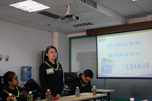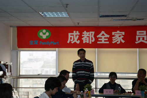 2013级连锁经营管理专业学生在全家成都福满家便利有限公司(简称全家公司)实习已有三个月。学院为了更好的收集、掌握实习学生生活、思想、工作、成长等情况,10月21日学院经营管理系张倩主任、总支书记郑海波一行8人前往全家总部,与全家公司部分领导和27位学生共同举办了“2013级实习生座谈会”。