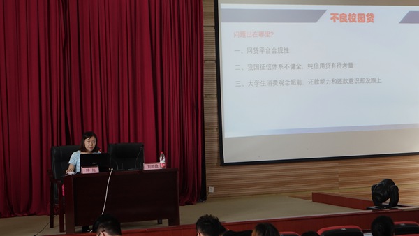 本次活动由共青团四川省委、四川银监局联合发起,银监局讲师刘皓晗、呼伟作为主讲嘉宾,学院学生代表共200余人到场参加。讲座中,刘皓晗和呼伟老师结合大学生群体的特点,就面对面诈骗、电信诈骗、校园网贷的诈骗方式作详细阐述。呼伟老师结合自身工作经验,通过身边发生的事例,重点对身份证、银行卡安全使用及防范通信诈骗进行了讲解。刘皓晗老师对校园网贷进行了精确的分析并提出了有效应对策略,让同学们对各种网络贷款方式与危害有了更为直观和深入的了解,进而提高防范意识。