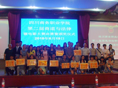 所有的作品都是各位主创人员的倾心力作,展现了参赛选手的世界观、人生观和价值观,有较高的思想性、艺术性、创新性,满满的正能量浸润着每一位到场观众。大赛现场秩序井然有序,体现了四川商院莘莘学子的高素质。历时50天的学院第二届商道与法律微电影大赛画上圆满句号。大赛前,思政部李璟副教授还为到场学生作了题为《大学生权益保护法律对策》的精彩讲座。