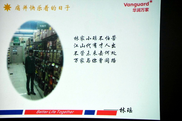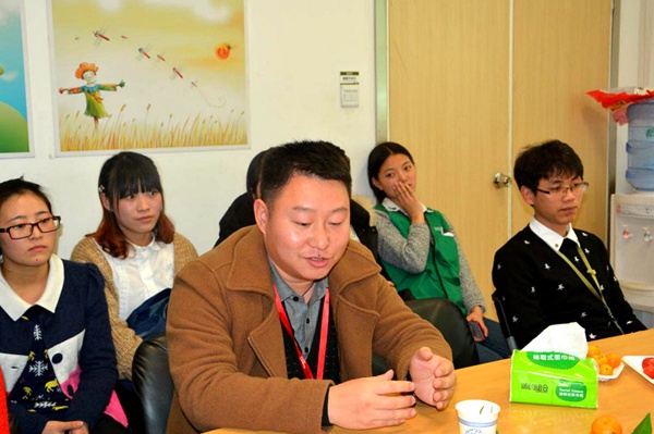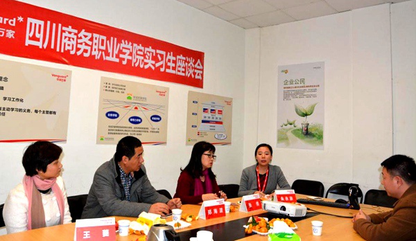 伟德官网2013级人力资源、连锁经营管理专业共13名学生在华润万家实习5个月以来。学院为了更好的沟通、掌握实习学生生活、工作、思想等情况,12月10日学院经营管理系张倩主任、总支书记郑海波一行4人到华润万家锦江翡翠城店,与公司胡承发经理、陈治宇经理、颜峰经理以及实习学生,共同举办了本次实习生座谈会。