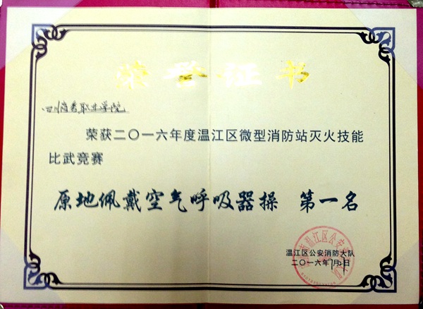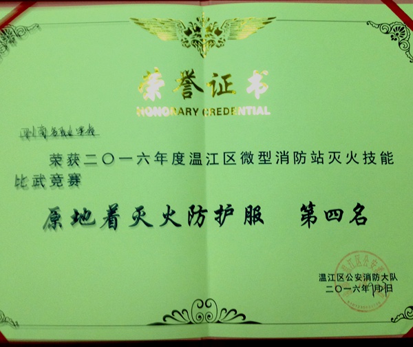 此次消防技能比武共设5个项目,即一人两盘水带连接操、原地佩戴空气呼吸器操、原地着灭火防护服、室内消火栓出水操、室外消火栓出水操。在所有的比赛项目中,张清老师带领张敏、翟海两名老师,动作娴熟,一气呵成,平时的训练成效在赛场上得到了淋漓尽致的体现,最终为伟德官网又添殊荣。