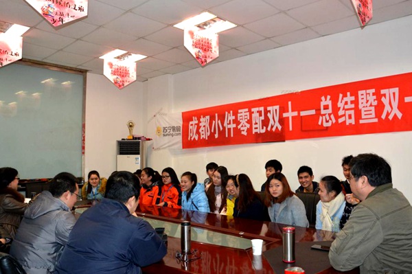 2013级物流管理专业共20名学生在苏宁公司实习5个月以来。学院为了更好的收集、掌握实习学生生活、工作等情况,12月18日学院经营管理系张倩主任一行8人到苏宁广汉物流基地,与公司江曼莉经理、各部门负责人、实习学生共同座谈交流。