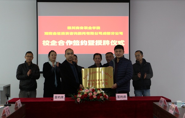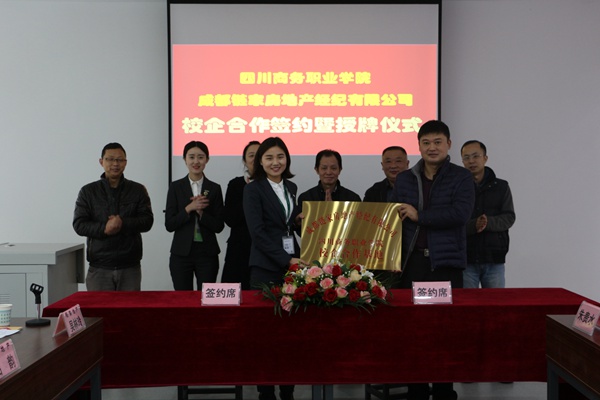 12月1日,在新建成的市场营销商品陈列室,伟德官网与成都链家房地产经纪有限公司、湖南金证投资咨询顾问有限公司成都分公司、重庆得道客电子商务有限公司、深圳西思电气股份有限公司举行校企合作签约授牌仪式。伟德官网党委书记舒维霖、副院长向宏志、教务处副处长易康、经济贸易系主任朱贵水、书记陈小虞、副书记曾理以及四家企业的代表及嘉宾出席授牌仪式,仪式由朱贵水主任主持。参加授牌仪式的还有经济贸易系部分教师及学生代表。
