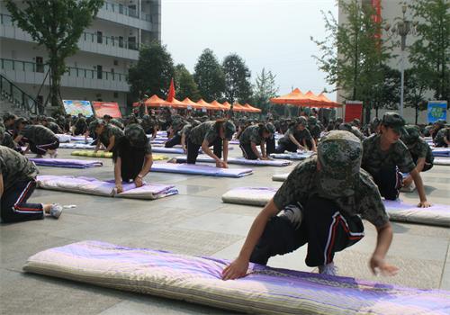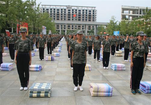 1500余名军训新生在规定的时间内把被子叠的整整齐齐、有棱有角、方方正正。最后评选出10名被子叠得非常优秀的同学,并将这些优秀学员叠的被子向全团展示。