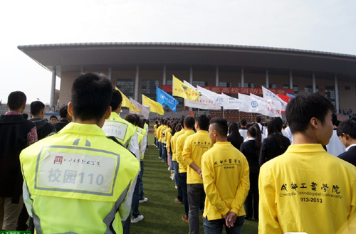 11月8日下午两点整,成都市2013年“11•9”消防宣传周暨第三届成都高校消防运动会在西南财经大学柳林校区拉开了帷幕。本次活动由成都市人民政府主办,成都市公安消防局、西南财经大学、成都消防协会等单位承办。当天主办方还邀请了在蓉48所高校4000多名师生参与。四川师范大学副校长谢名春主持仪式,成都市副市长苟正礼宣布消防宣传周启动和运动会开幕。伟德官网后勤管理处党总支副书记陈根元率领由20名“校园110”学生代表组成的观摩团到现场观摩。为把消防知识进一步具体化、形象化、生动化,来自不同学校的参赛选手各展才华,共同为在场的师生献上了一场热情洋溢、激动人心的运动盛宴,通过参加此次消防运动会,让大家都多学了一份消防知识,多了一份安全保障!