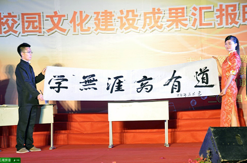 晚会现场的浓厚氛围也深深吸引着在场的领导嘉宾,他们禁不住热情也加入到了晚会的表演中。舒维霖书记激情高歌《革命现代京剧样板戏选段》。最后,师生大合唱《相亲相爱一家人》则以美妙动情的旋律唱出了那份浓浓的师生情谊,为晚会划上了一个圆满的句号。