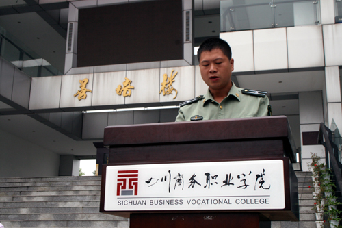 庄严的国歌声中,军训动员大会隆重开始。学院党委书记舒维霖代表学院向各位新同学表示热烈的欢迎,他希望2014级的新生秉承伟德官网“学无涯,商有道”的商道文化精神,勇于接受任何挑战,坚决服从教官的安排,发扬革命前辈吃苦耐劳的精神。会上四川省学生军事训练基地龙泉驿区人民武装部分基地陈道洪同志、唐运同志代表参训基地教官对军训做了具体要求,军训教官和参训学员代表也做了精彩发言。在嘹亮的军歌声中,学院院长高力平为军训团授旗,代表了军训团的成立,军训正式开始。