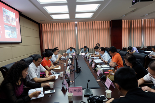 随后,在学院善培楼二楼会议室,谢厅长一行与学院领导班子开展座谈。学院党委书记舒维霖和学院院长高力平首先进行汇报,其他学院领导也就自身分管工作情况进行了发言。谢开华厅长一行认真听取了汇报,并就有关问题进行了深入地提问交流,提出了重要意见和建议。