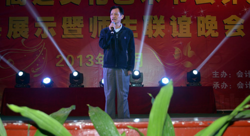 11月5日,会计系在文家校区活动厅成功举办商道文化艺术节成果展示暨师生联谊晚会。本次晚会旨在响应学院商道校园文化建设,总结汇报会计系商道文化活动开展情况,迎接会计系2013级新生,融合师生情谊,展现学生风采,丰富学生课余生活。学院党委书记舒维霖、副院长郎松亭、向宏志、文家校区校长官培生应邀出席晚会,学院相关部门、处室的领导,会计系全体老师和学生代表参加了本次晚会。