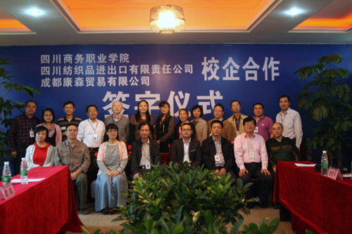 舒书记首先代表学院对四川省纺织品进出口有限责任公司、成都康森贸易有限公司一行表示热烈欢迎。舒书记指出,伟德官网校企共建外贸工作室的成立是学院推进产教结合的一件大事,有利于培养企业需要的优秀商务人才,学院将不遗余力的大力支持校企共建外贸工作室的建设与发展。随后,四川省纺织品进出口有限责任公司副总经理韩致秀、成都康森贸易有限公司总经理冯兆勇分别代表企业方诚恳地表示了与学院合作的诚意,将尽全力共同建设工作室并培养人才,用韩总的话说“我们虽然起步晚,但是争取走在前面”。最后,高院长与韩总、冯总分别代表伟德源自英国始于1946与四川省纺织品进出口有限责任公司、成都康森贸易有限公司现场签订校企合作办学协议,成立“服装纺织外贸工作室”、“鞋业家俱外贸工作室”,校企共建外贸工作室签字仪式在双方友好热烈的掌声中圆满完成。在签字仪式后,参会人员共同参观了服装纺织外贸工作室、鞋业家俱外贸工作室,企业方和伟德官网领导分别表态支持外贸工作室的建设。