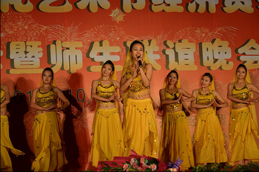 随后,本次晚会的文艺演出部分拉开序幕。经济贸易系的师生们为本次晚会准备了丰富的节目,包括歌曲、舞蹈、小品、歌伴舞、乐队表演等。在文艺演出部分,经济贸易系的老师们和同学们纷纷上台表演,包括班主任代表马晶老师、教师代表王惠琼老师。在文艺演出中,舒书记也被晚会愉快的气氛所感染,现场为师生们演唱了一首歌曲,赢得了同学们的阵阵掌声。最后,经济贸易系党总支副书记周发强、副主任曾理、团总支书记马宁、燕来老师、杜军老师、粟锐老师与同学们一起进行经济贸易系师生大合唱《爱,因为在心中》,晚会在愉快的气氛中圆满结束。