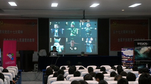 讲座由完美动力公司技术总监王磊主讲。本次讲座主要围绕CG短片作为一种时尚、一种展示自我思想的动画表现形式进行了阐述。随着视频网站的兴起,CG短片以其短小精悍的体裁,富含原创性、娱乐性、思想性的内涵,受到越来越多动画爱好者的推崇。完美动力一直主张原创作品,并致力于优秀CG短片的制作与推广。以完美动力成都授权中心动画一班的学生作品《炮灰兔》之善待动物的片头动画为例,王磊先生还详细地讲解了制作动画的步骤,要求同学们认识并熟悉软件的动画制作方法以及动画控制面板,能制作出小球弹跳动画,为第二步的制作打下良好基础,目的也是让同学们掌握在三维软件中应用平时所学的《动画原理》。通过对短片中的跑步动画制作原理的详细分析,以及生动有趣、身体力行的展示让同学们进一步理解跑步中的POSE,同时初步理解动画中的最重要的知识之一节奏,并拓展讲解了制作要点节奏的掌握对动画的影响。