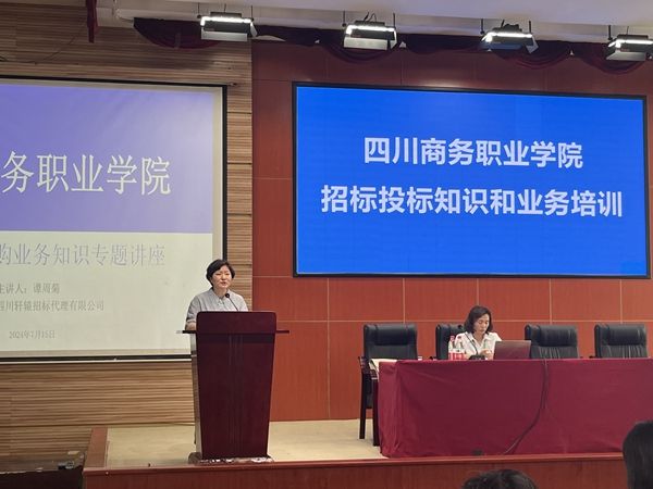 为深入宣传贯彻招标采购政策,进一步规范招标采购活动,7月15日下午,伟德官网在商务信息交流中心举行招标采购业务专题培训会。会议邀请四川轩辕招标代理有限公司副总经理谭周菊作政府采购与招标投标业务知识专题讲座。党委副书记、院长高司华,副院长康璐,党委委员、副院长王军出席会议。会议由党委委员、副院长王军主持。