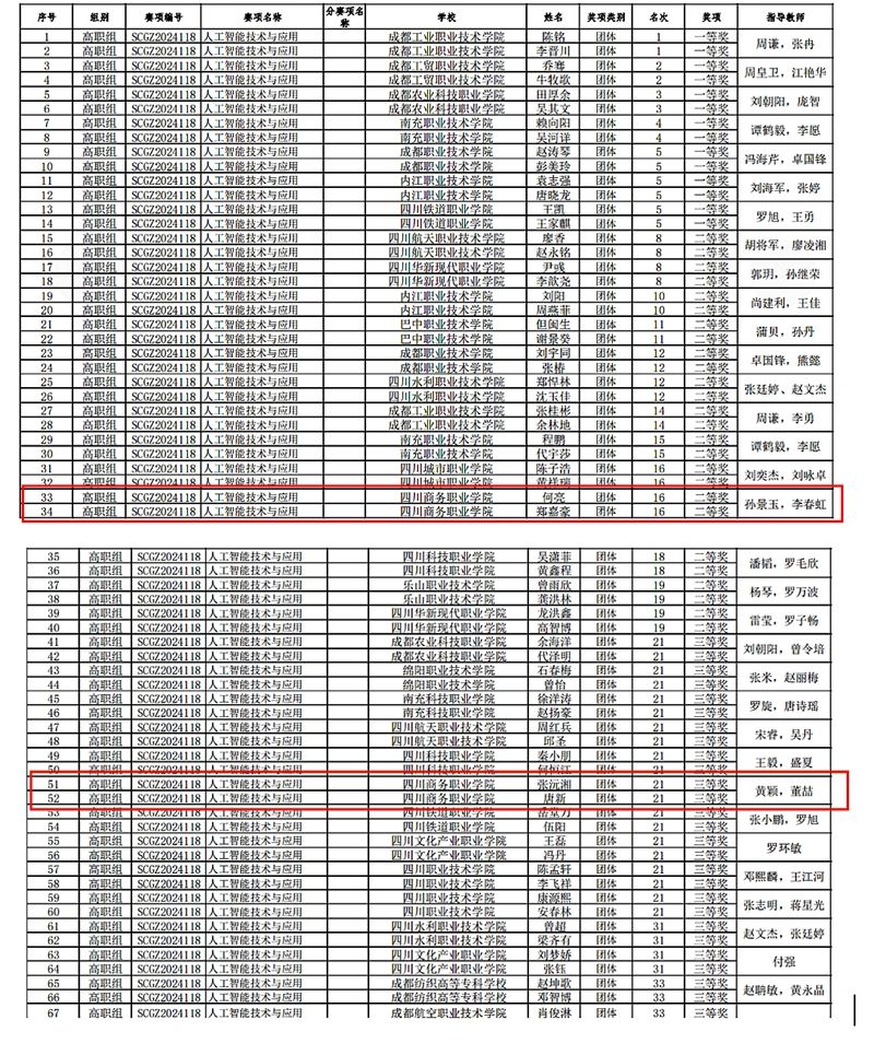 12月13日,由四川省教育厅主办、成都工业职业技术学院承办的2024年“中银杯”四川省职业院校技能大赛(高职组)人工智能技术与应用赛项结果揭晓。由伟德官网信息技术系教师李春红、孙景玉指导的学生团队获得二等奖,黄颖、董喆老师指导的学生团队获得三等奖,实现伟德官网在该赛项上零的突破!