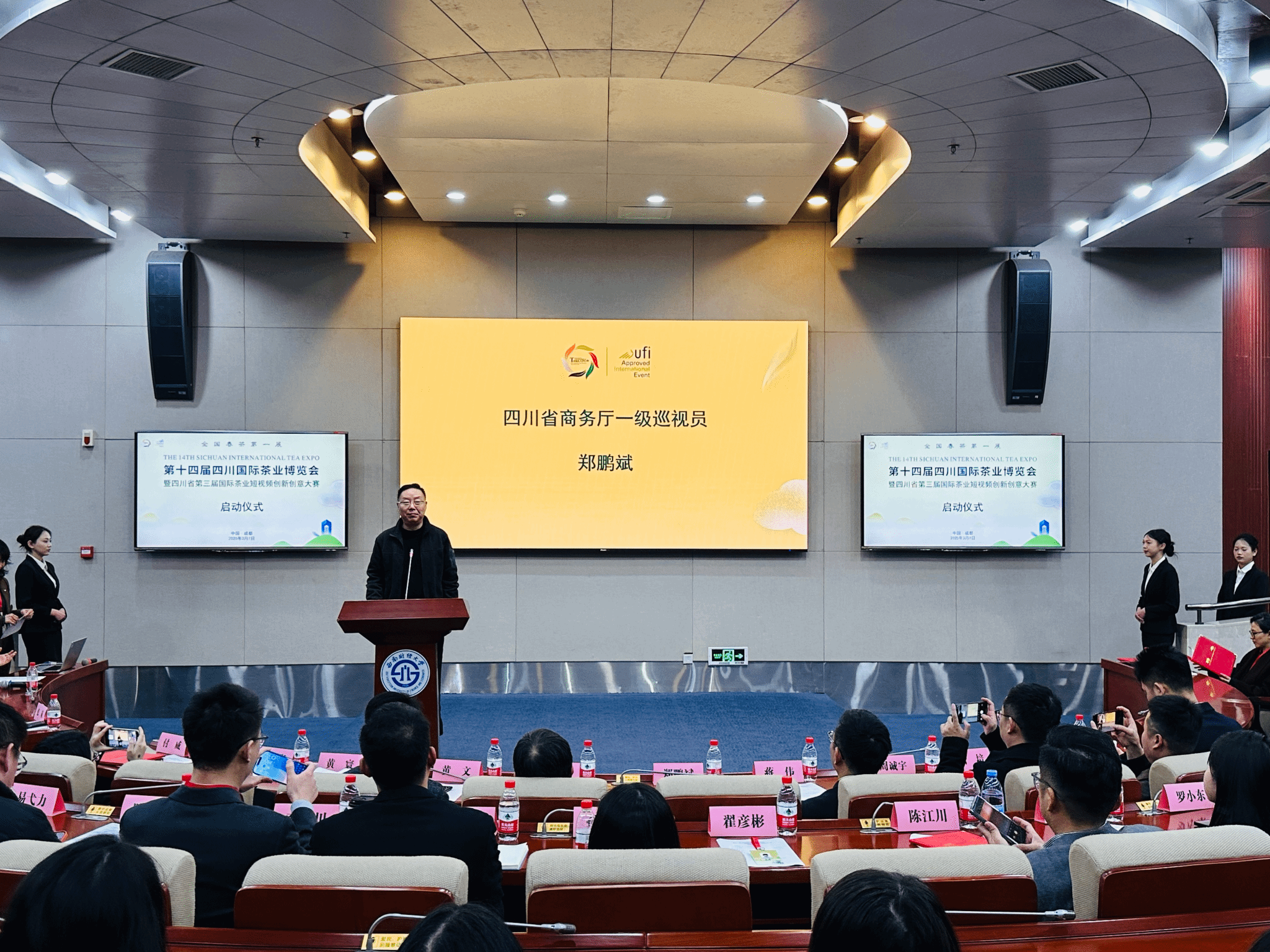 出席启动仪式的领导有四川省商务厅一级巡视员郑鹏斌,西南财经大学经济与管理研究院党委书记黄文,伟德源自英国始于1946党委副书记、院长高司华,达州职业技术学院党委副书记、校长蒋伟,国务院政府特殊津贴专家、成都理工大学二级教授黄寰,四川省供货商商会秘书长杨旭爽,四川国际茶业博览会组委会新媒体中心主任周诚宇等。参加启动仪式的还有来自全省部分大专院校、科研院所和行业企业代表。
