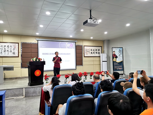 唐建以“用劳模工匠精神,做高质量感动服务”为题作专题讲座,讲座围绕珍惜校园时光、大学生成长规划、精益求精提升技能、就业创业路径等四个方面展开。唐建的点滴成长经历、坦诚用心的交流引起了参会师生的广泛讨论,赢得了阵阵掌声,促使同学们对为学、为事有了更深刻的思考。