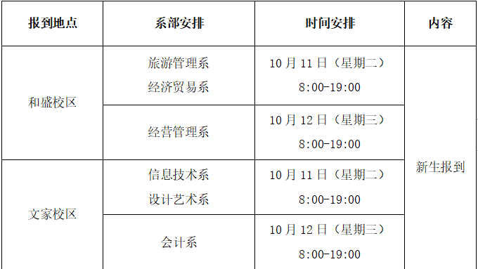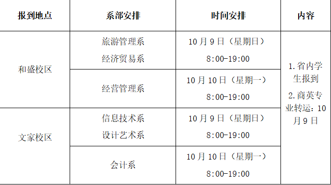 2.省内新生10月11日—12日报到