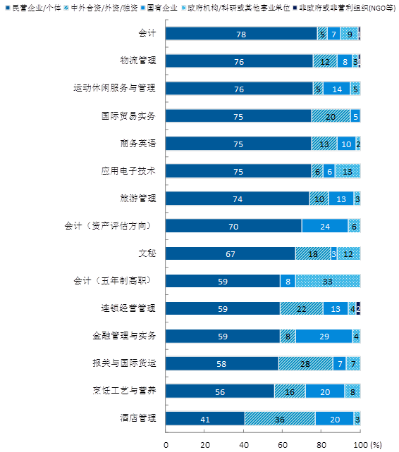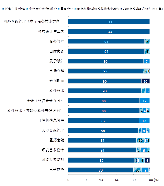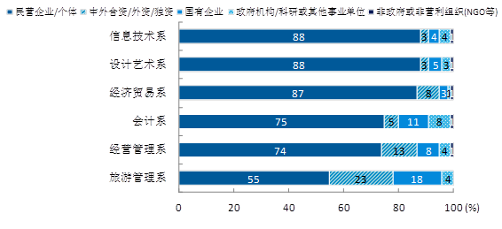 图 1-8 各专业毕业生的用人单位类型分布....................................................................... 14