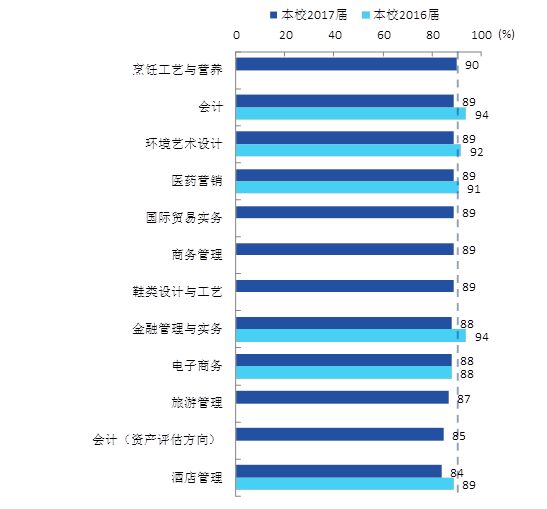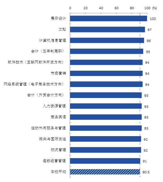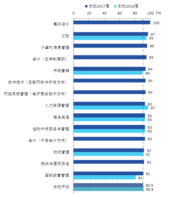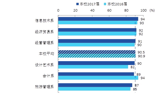本校2017届毕业生的就业率为90.5%,与本校2016届(90.9%)基本持平。