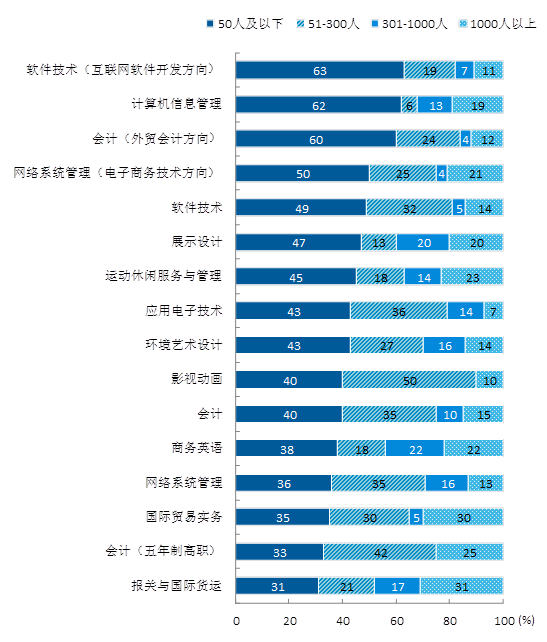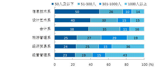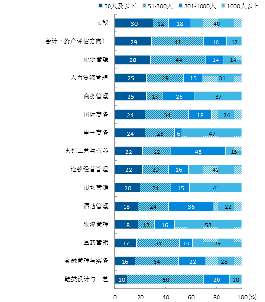 图 1-10 各专业毕业生的用人单位规模分布....................................................................... 17